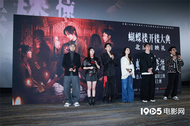 1905电影网讯 4月1日,电影《蝴蝶楼·惊魂》在北京举办电影首映礼,影片编剧及导演郝瀚,领衔主演李梦、刘思维、姜卓君,特邀主演周铁出席活动现场。主创在现场与观众热情互动,揭开影片拍摄的幕后故事,并诚挚分享了创作心得。导演乌日娜、马多,以及刘天池、刘美含等业内同僚在观影后表达了对影片的喜爱,赞扬了主创深耕恐怖片赛道的用心。